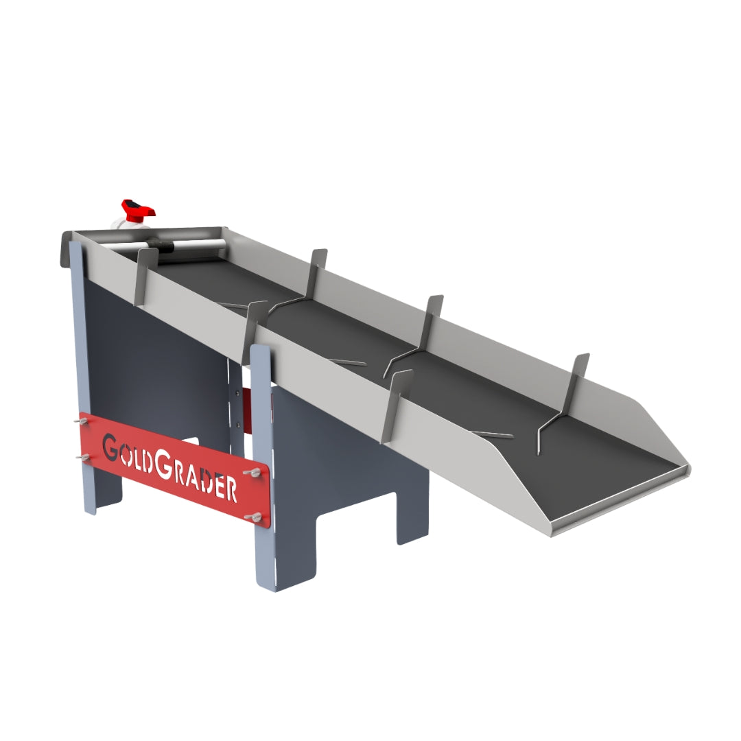 The GoldGrader Concentrates Upgrader is a simple, chemical-free method of upgrading gold concentrates prior to panning and smelting. The unit includes a number of riffles to divide the concentrating surface into separate zones, the length of which can be adjusted to fine-tune the performance to your specific application. Material is washed over the GoldGrader where the heavy gold is trapped within the surface matting, and the lighter waste material is washed over. The mat is then removed from the tray for clean-out of the recovered gold.